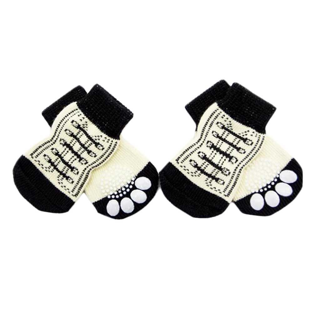 4 Pcs White Shoes Pattern Cute Puppy Cat Socks Knitted Pet Socks Dog Paw Protection for Puppy Indoor Wear